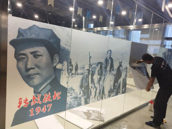 給客戶貼玻璃磨砂貼