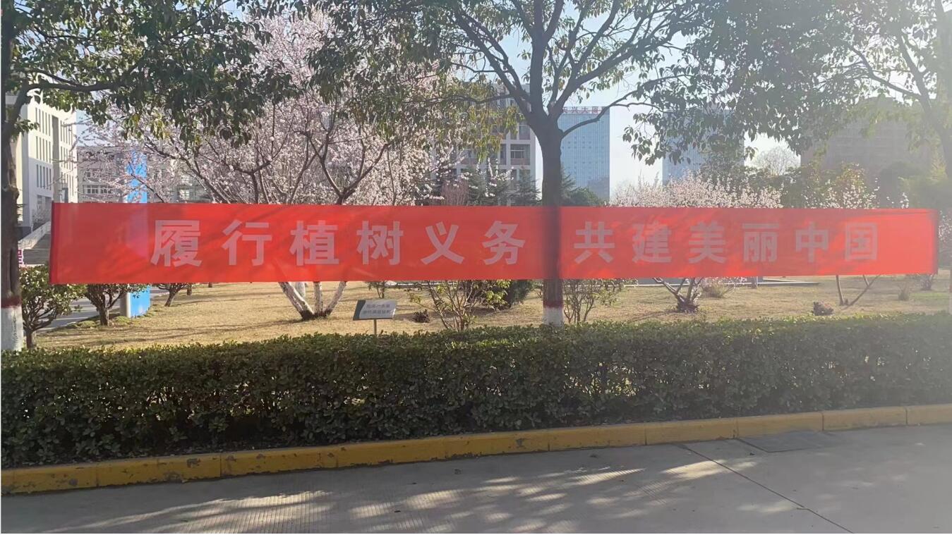 斯宇廣告為商貿(mào)學院設(shè)計安裝植樹節(jié)條幅